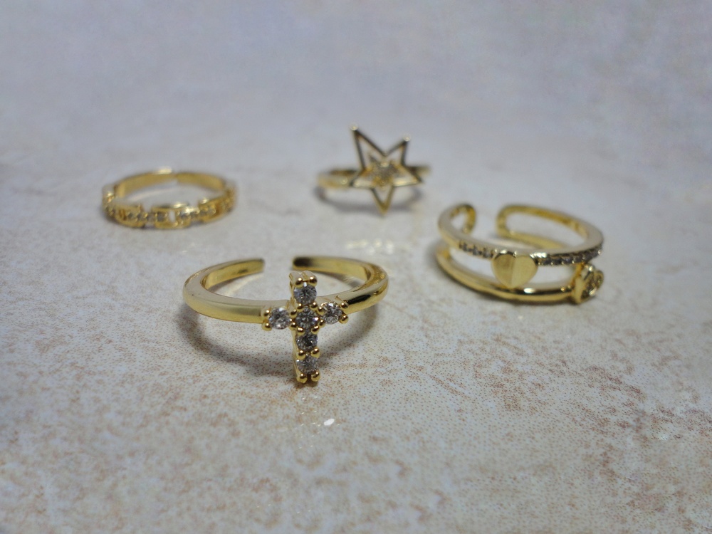 Anillo con diseño de cruz e incrustación de micro circones, delicado y moderno.