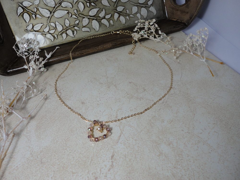 Collar con dije de corazón hecho a mano y tejida con cristales, Diseñadas para ti; y ya que son piezas creadas a mano las hace únicas e irrepetibles.