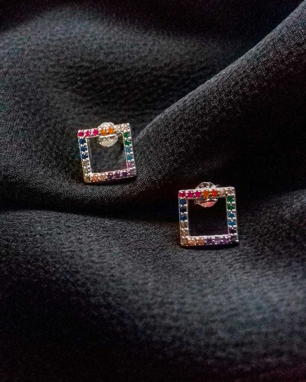 - Pendientes cuadrados de Plata con incrustación de micro circonitas de colores
