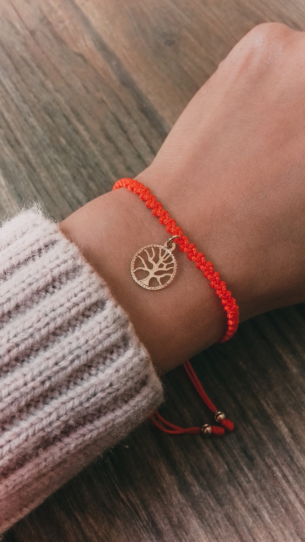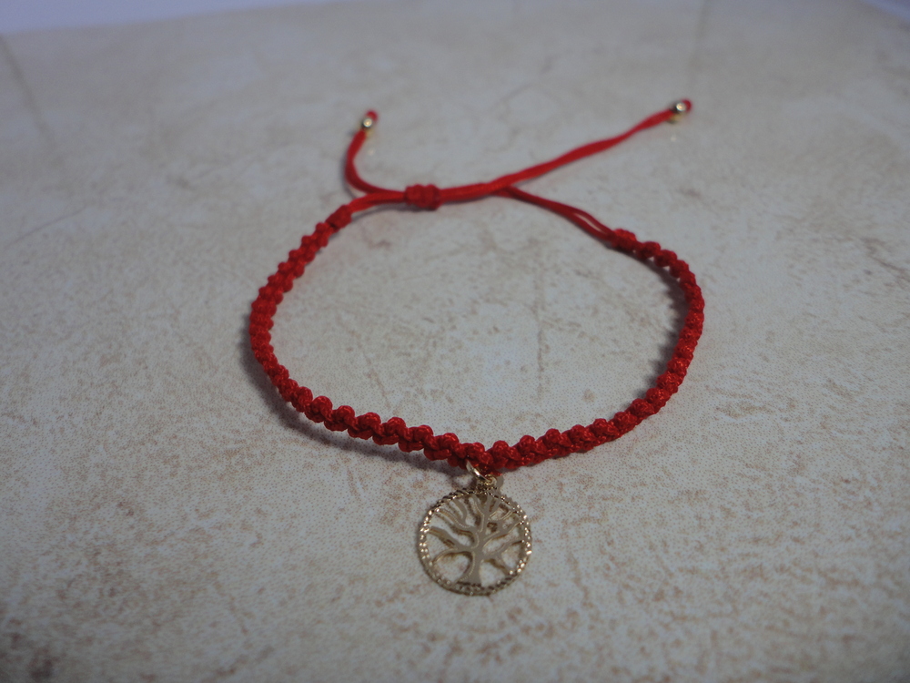 Pulsera tejida en hilo chino color rojo con dije sencillo árbol de la vida. Simboliza toma de decisiones.