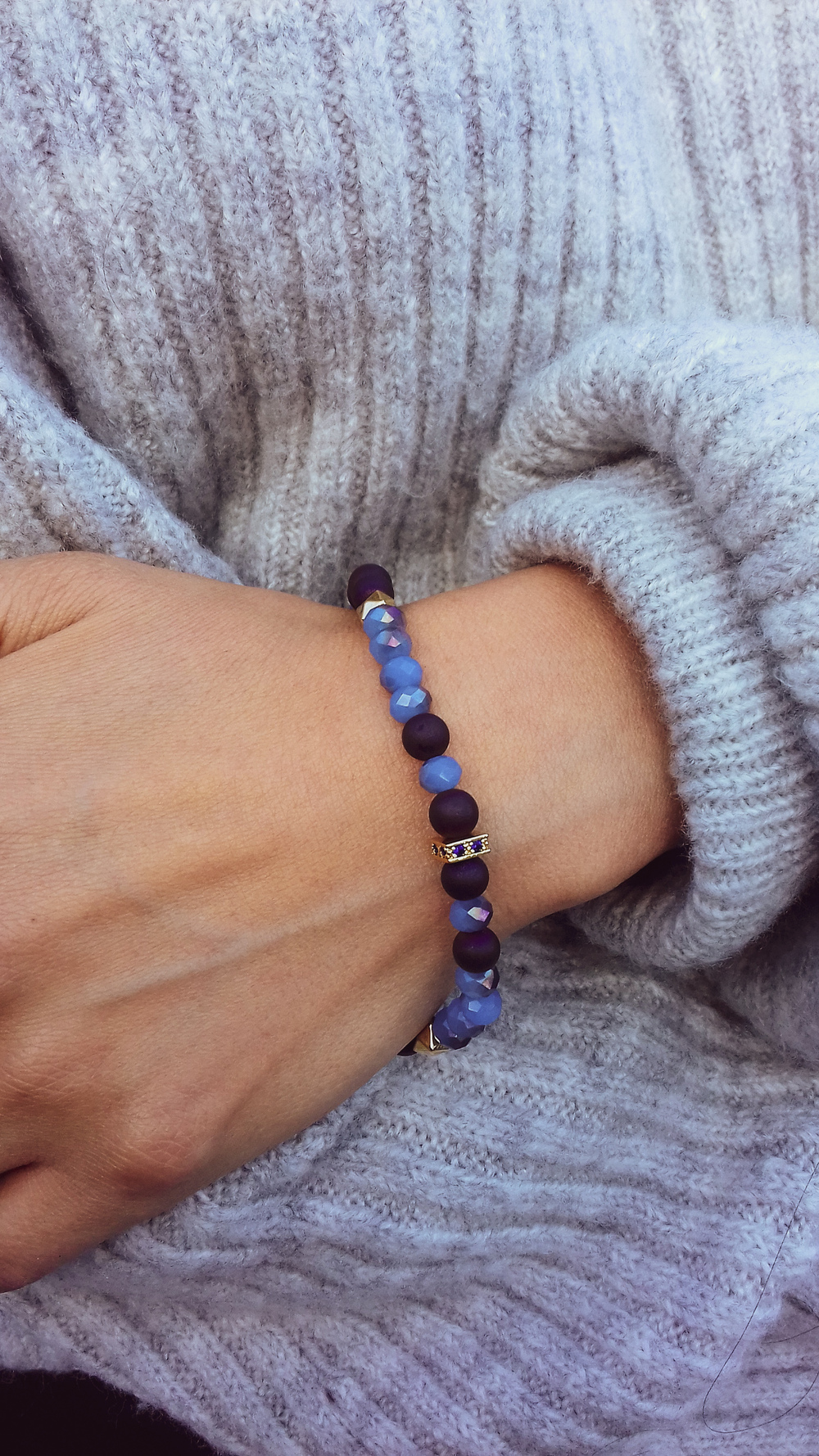 Pulsera con hilo elástico reforzado, piedras naturales y cristales. Separador cuadrado con incrustación de micro circón. Combinables y divertidas con tu look.